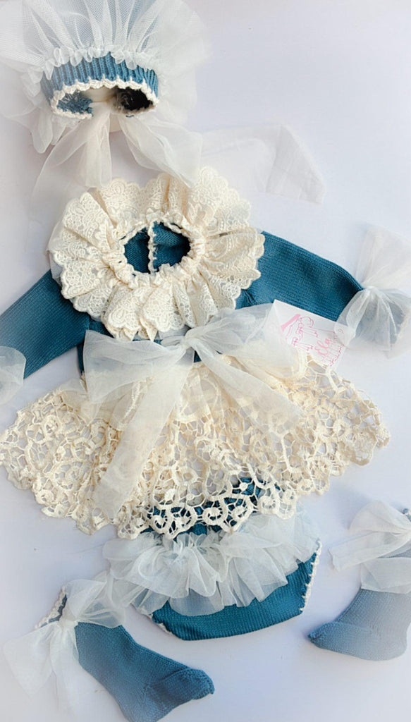Ela Confeccion AW25 Spanish Girls Teal Knitted Dress Set - MADE TO ORDER