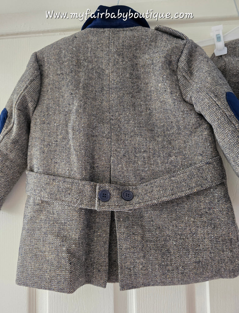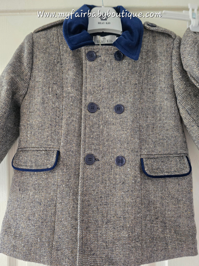 Beau Kid Traditional Boys Navy Tweed Coat 1500a ~ 3-6y