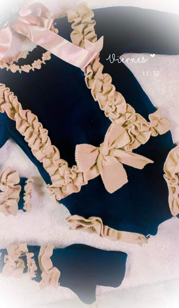 Ela Confeccion Spanish Girls Navy Knitted Romper Set