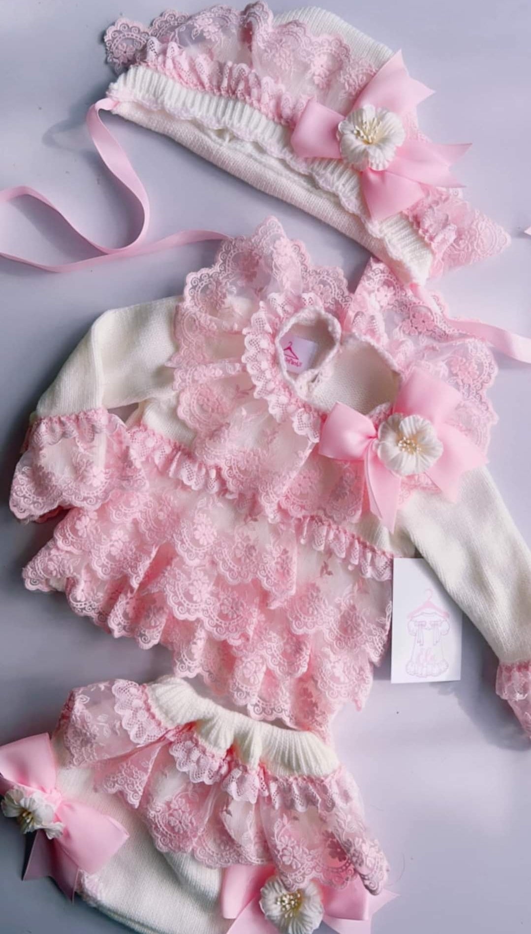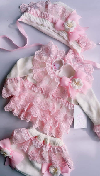 Ela Confeccion AW24 Spanish Girls Pink Knitted 3PC Set - MADE TO ORDER