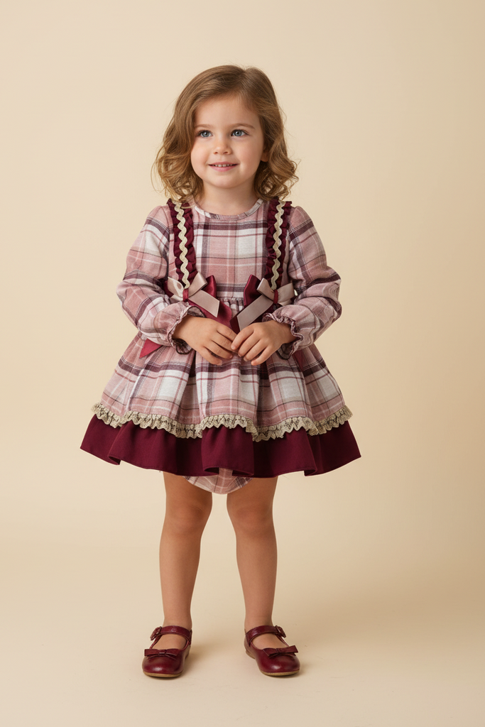 Ceyber AW25 Spanish Girls Burgundy Check Dress B2530 ~ 12m-8y