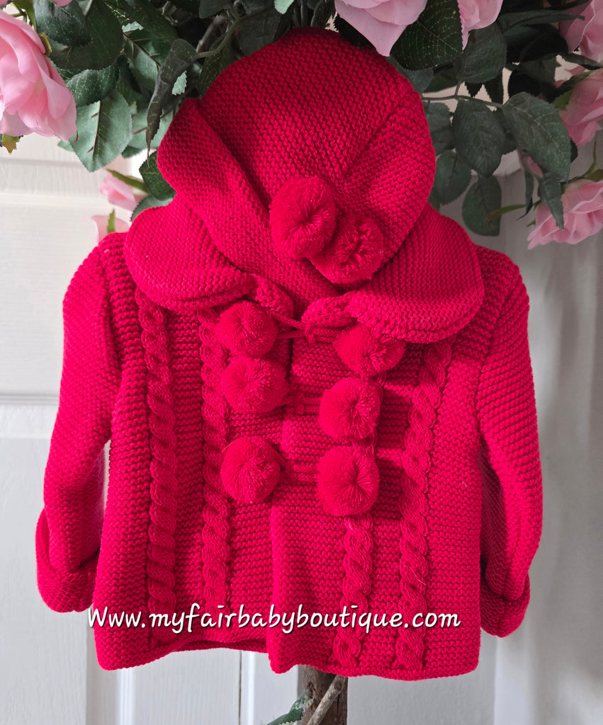 Spanish Unisex Baby Red Knitted Pom Pom Jacket & Hat Set ~ 3,18m