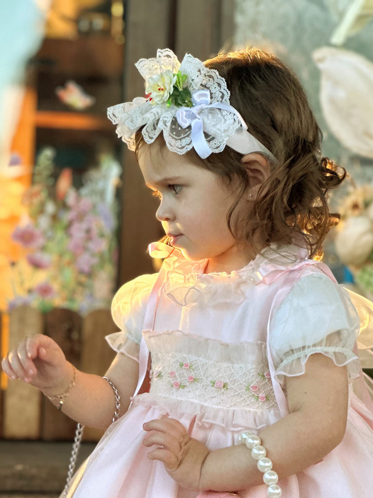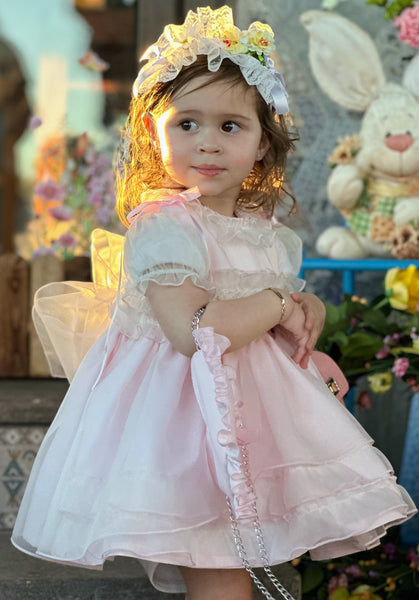 Sonata Infantil SS25 Spanish Girls Pink Smocked Roses Puffball Dress VE2504 ~ MADE TO ORDER