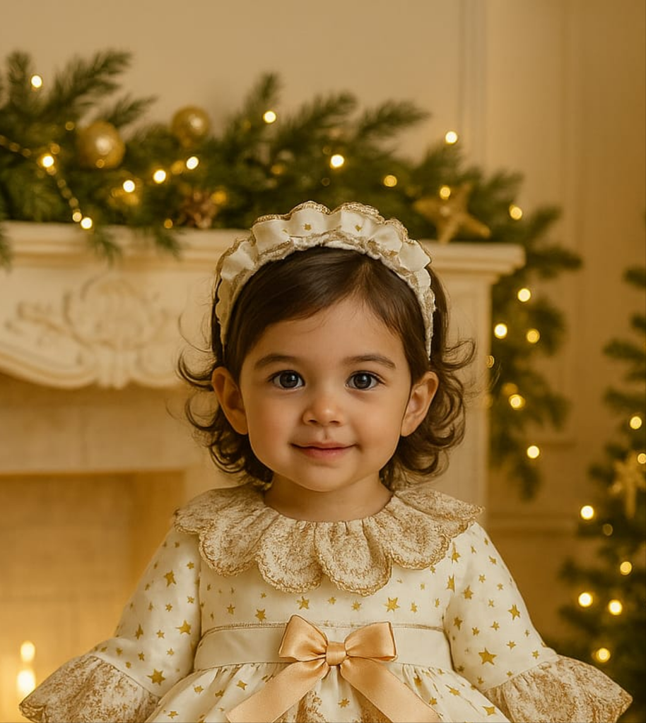 Sonata Infantil AW25 Spanish girls cream & gold Christmas star headband. Matching dresses are available separately. Order by the 5th November for guaranteed xmas delivery!