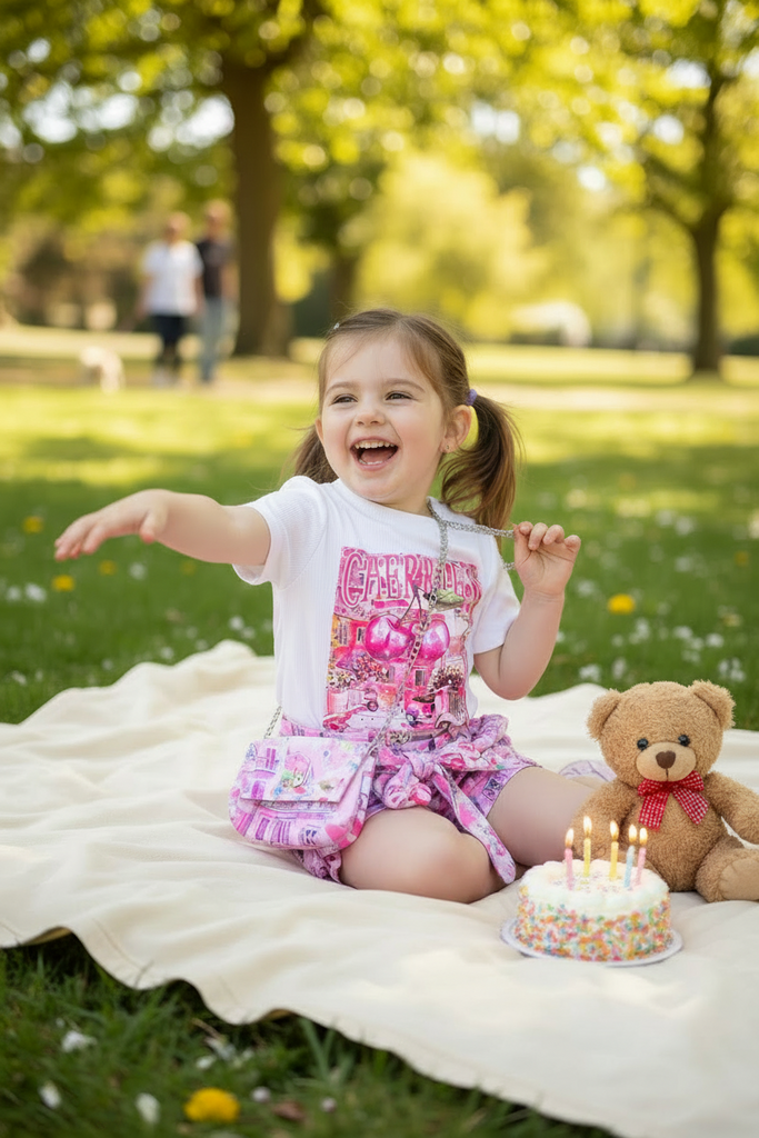 Older Girls Pink Cherries Print Top, Shorts & Bag Set ~ 4-14y