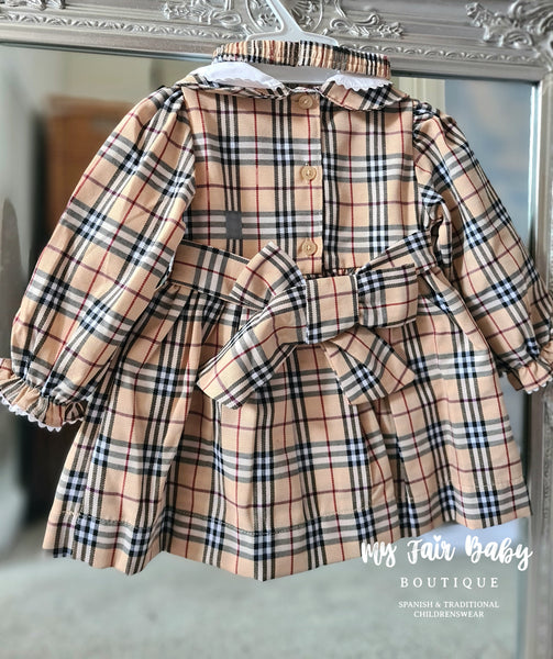 Traditional Girls Beige Tartan Dress Set 9001 ~ 1-4y
