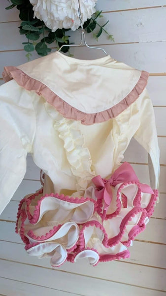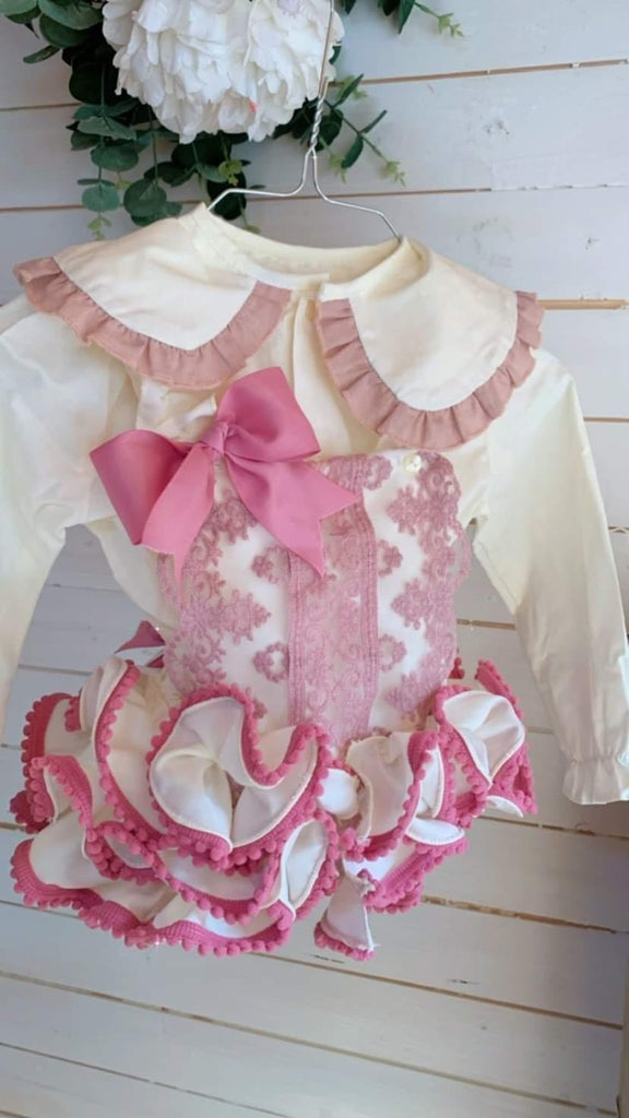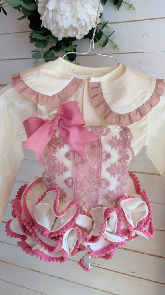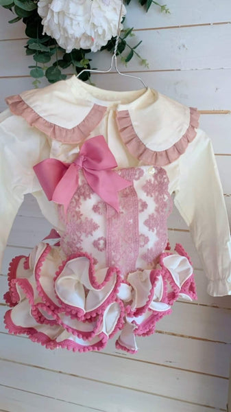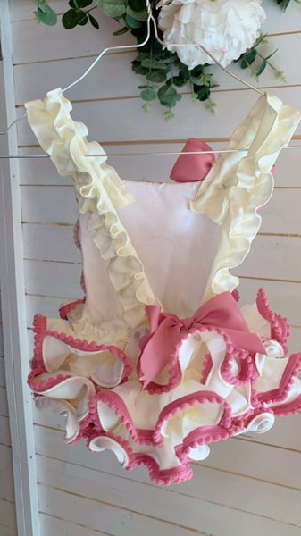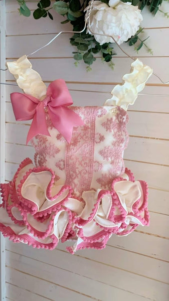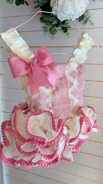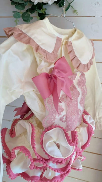 Ela Confeccion Spanish Girls Pink & Cream Lace Romper ~ MADE TO ORDER
