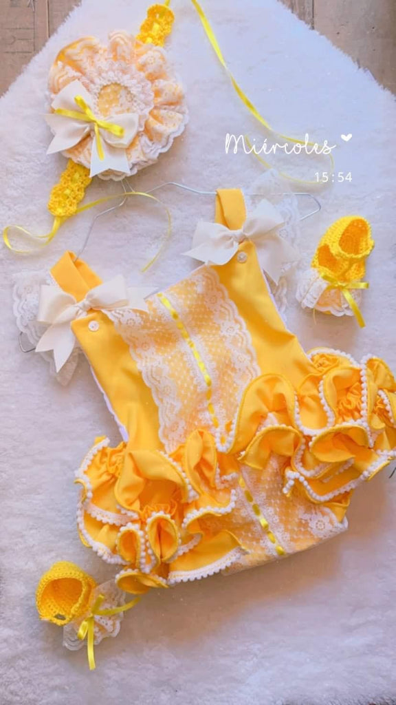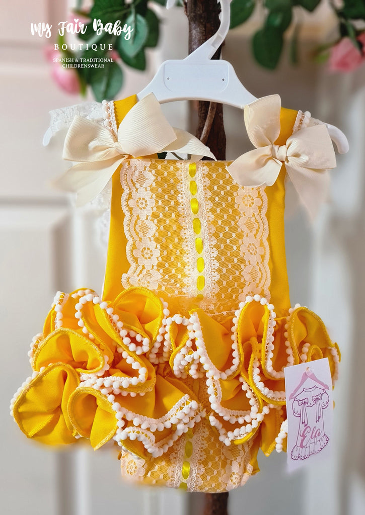 Ela Confeccion Spanish Girls Sunflower Yellow Frilly Romper - MADE TO ORDER