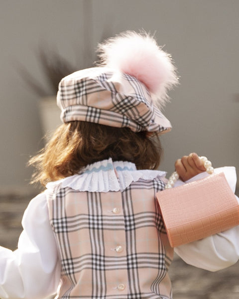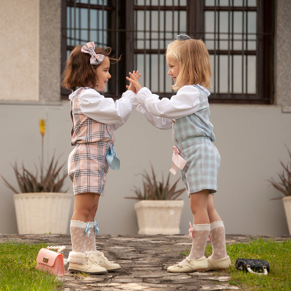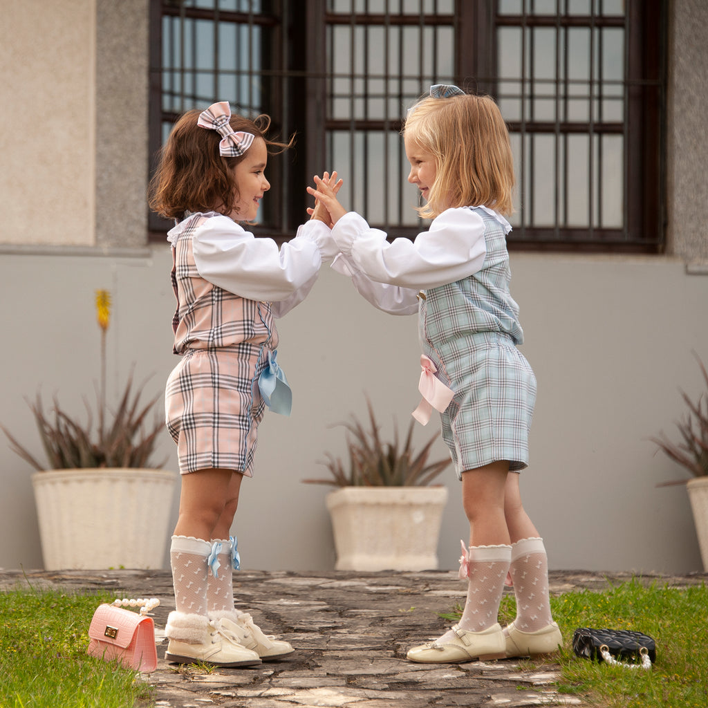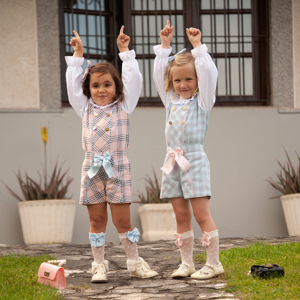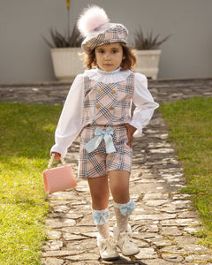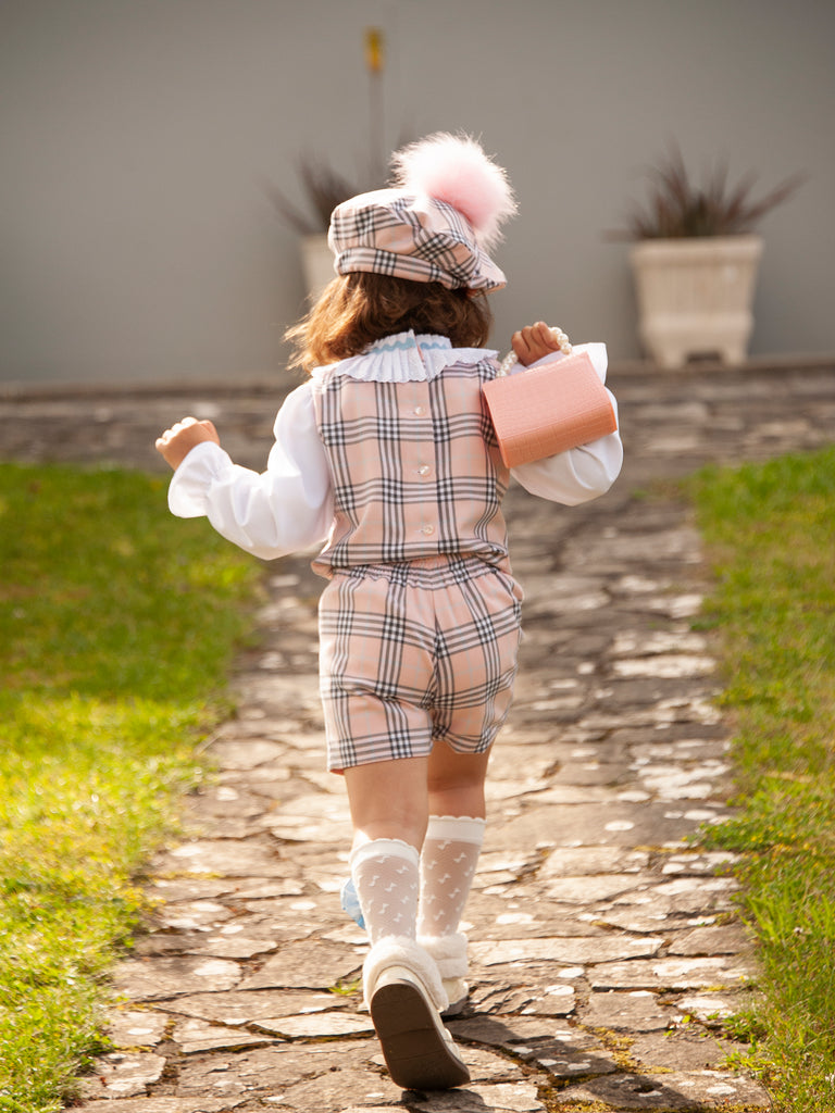 Sonata Infantil Spanish Girls Pink Tartan Short Set IN2336 - MADE TO ORDER