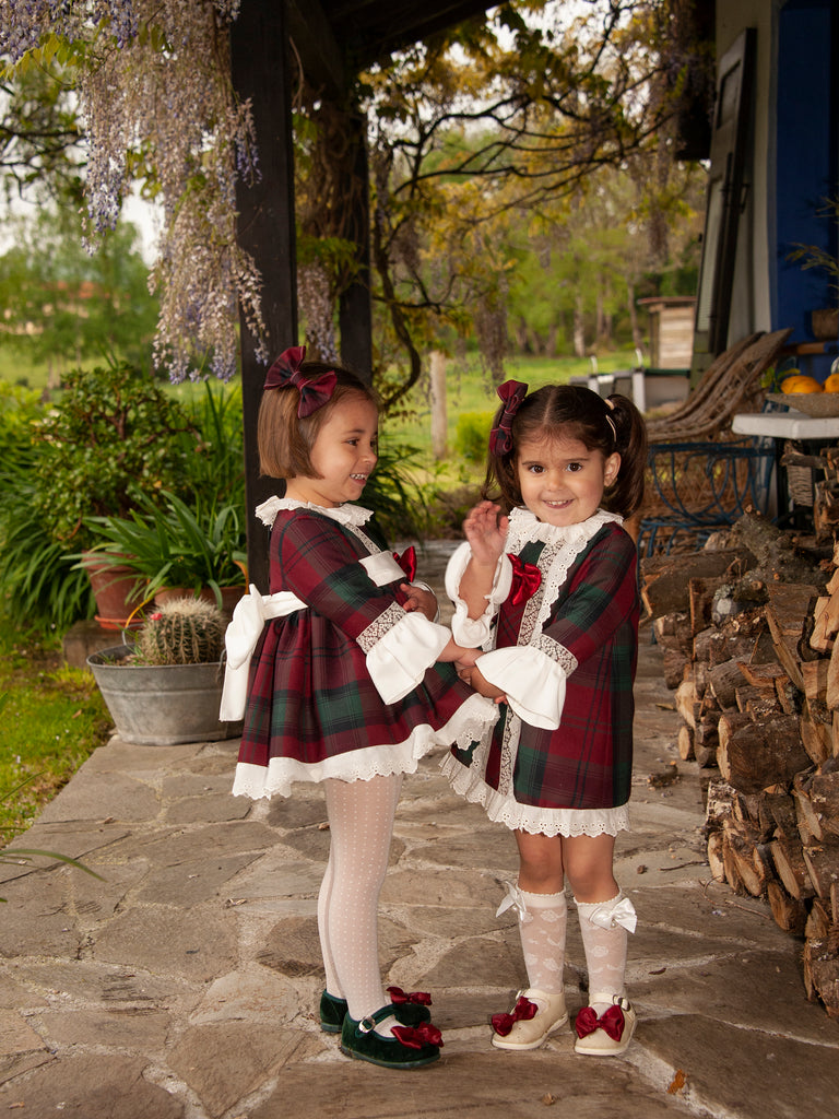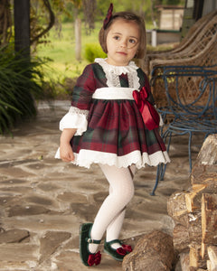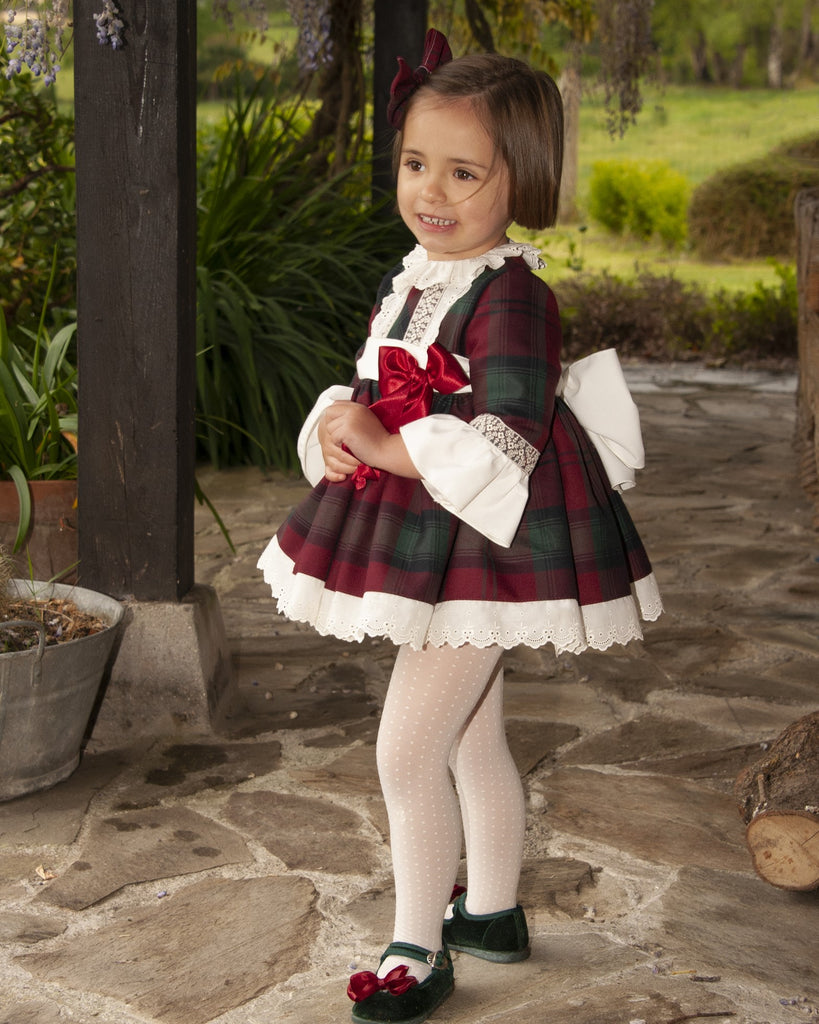 Sonata Infantil AW24 Spanish Girls Burgundy Puffball Dress IN2415 - MADE TO ORDER
