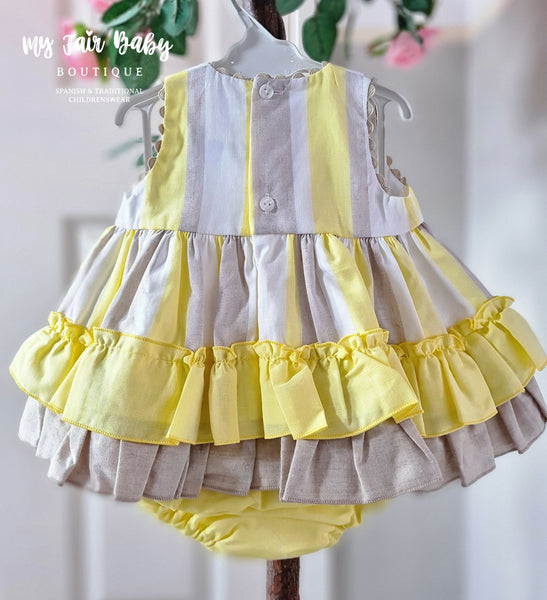 Ceyber Spanish Baby Girls Yellow & Tan Ruffled Dress MC5220 ~ 3,6m