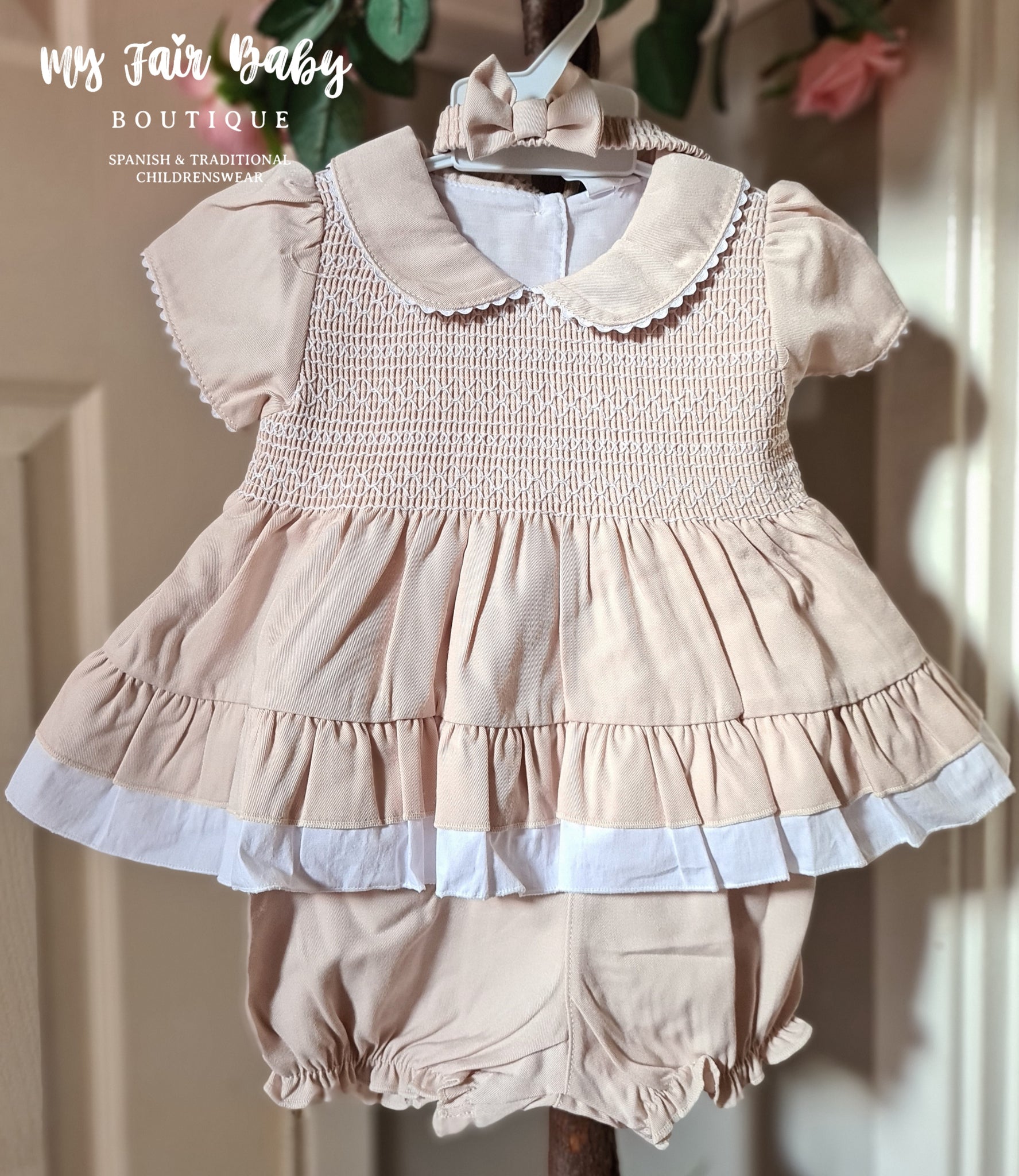 Traditional Spanish Girls Sand Smocked Dress Set 9010 - 0-2y