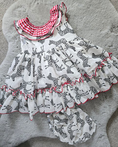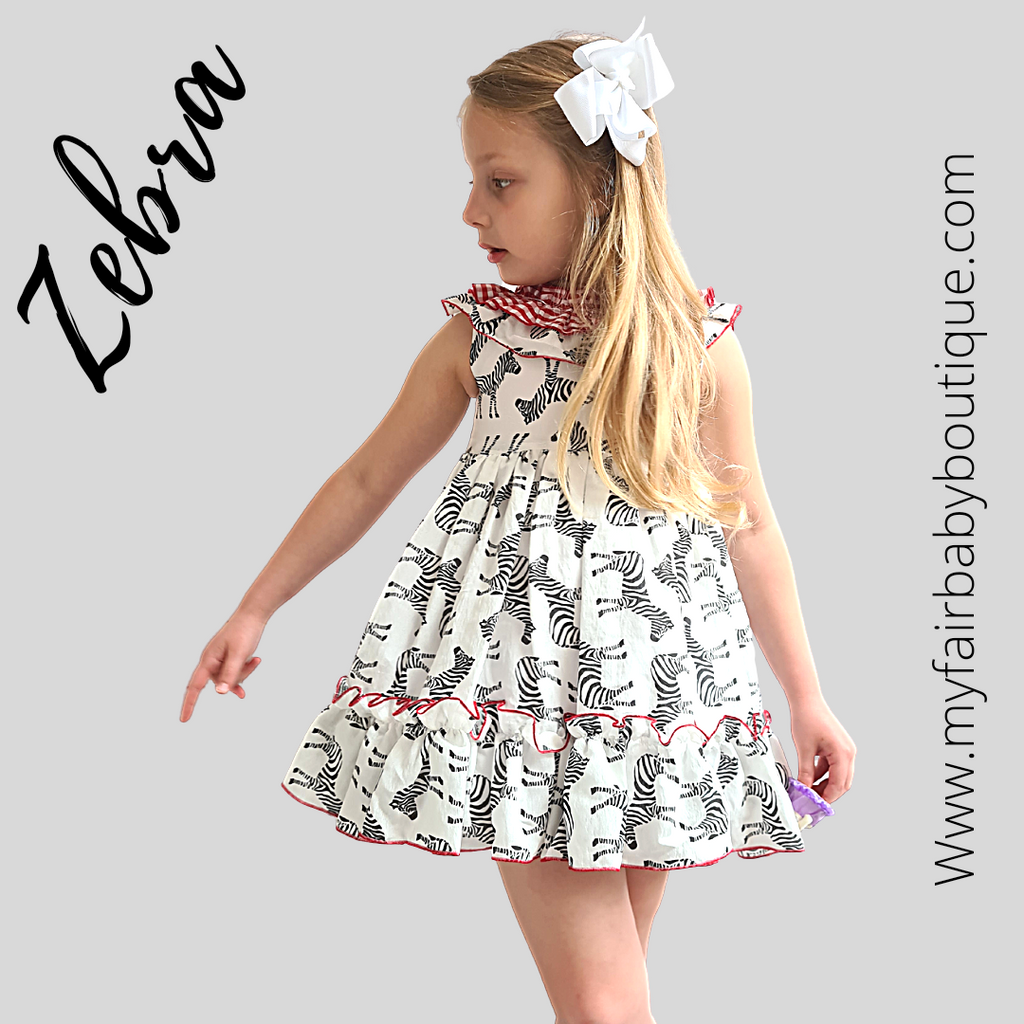 Clemencita Zebra Puffball Dress. SS21 collection. My Fair Baby Boutique