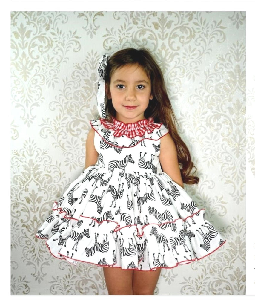 Spanish girls zebra print dress by Clemencita. Hair piece is not included. Pants are included for size 3y. NON RETURNABLE.