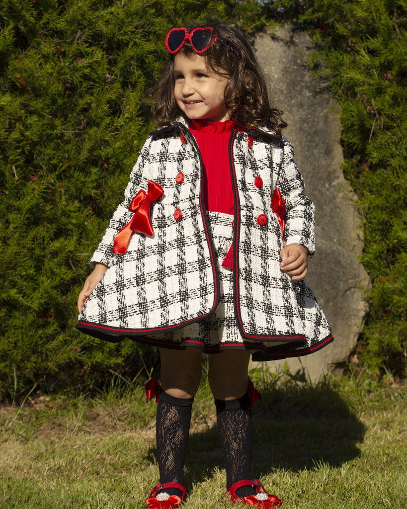 Sonata Infantil AW24 Spanish Girls Black Check Coat IN2424 - MADE TO ORDER