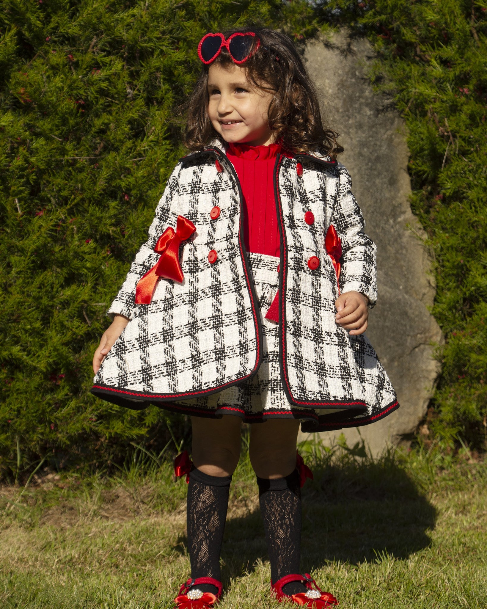 Sonata Infantil Spanish girls black check coat. True to size fitting. The beret is not included but is available to order seperately. This item is made to order and takes approximately 8 weeks to arrive from the order date (if you need the item sooner please message us to discuss this)