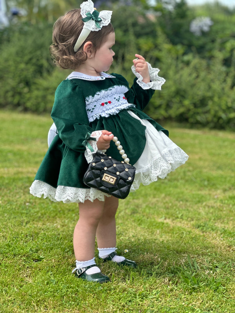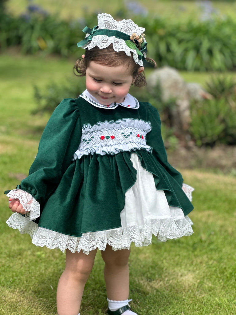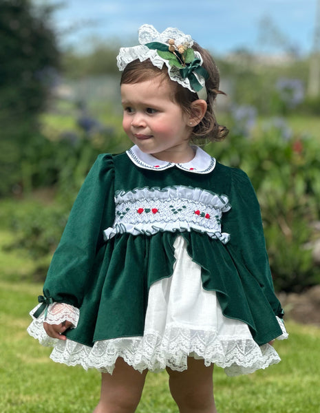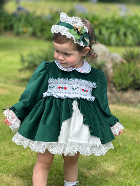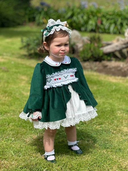 Sonata infantil AW24 Spanish Girls Green Smocked Puffball Dress IN2437 - MADE TO ORDER