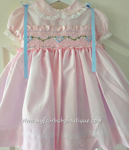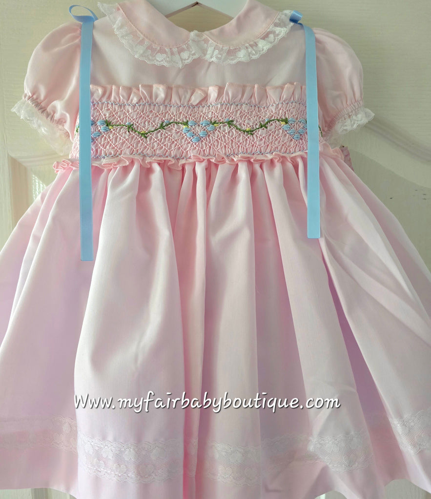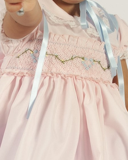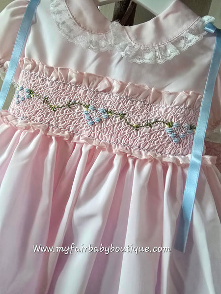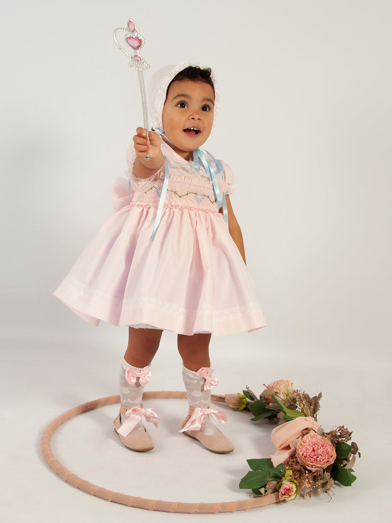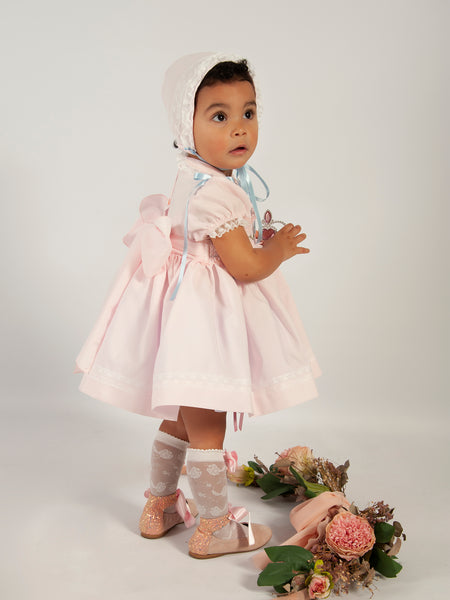 Sonata Infantil Spanish Girls Pink & Blue Smocked Puffball Dress & Bonnet VE2426 ~ 3y ~ IN STOCK NOW