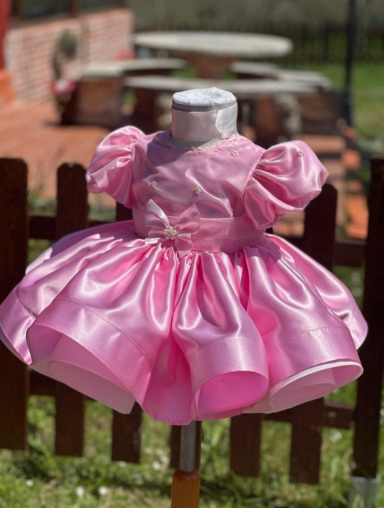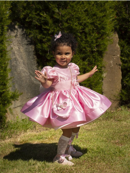 Sonata Infantil traditional Spanish girls satin puffball dress availablein 5 different colour options. The matching bag is available to order seperately. True to size fitting. This product is made to order and will take approximately 6 weeks to arrive from the order date. Kindly note items which are 'Made to order' are exempt from a return, as they are ordered in by customer request. If you need measurements before ordering, please send us a message via email, or contact us on Facebook My Fair Baby Boutique - Home | Facebook or Instagram @my_fair_baby_boutique