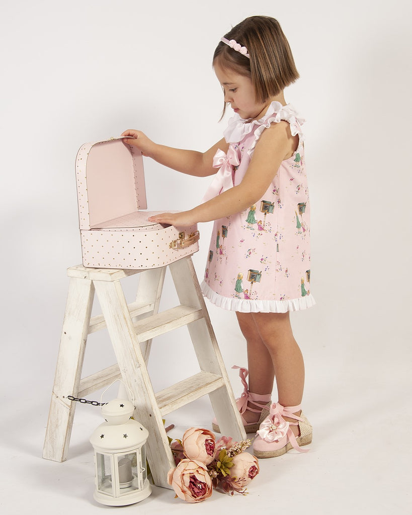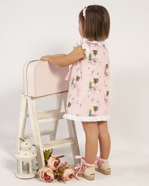 Sonata Infantil SS24 Spanish Girls Pink Printed A-Line Dress VE2439 - MADE TO ORDER