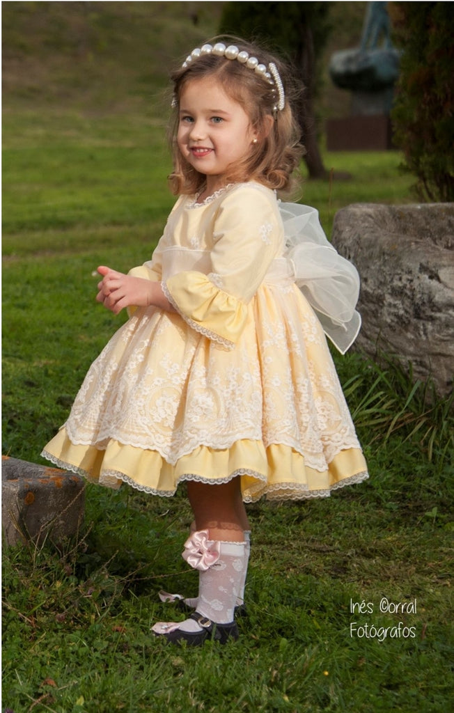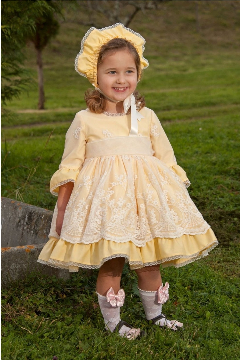 Sonata Infantil Spanish Girls Lemon Lace Kiara Dress VE2108 - MADE TO ORDER