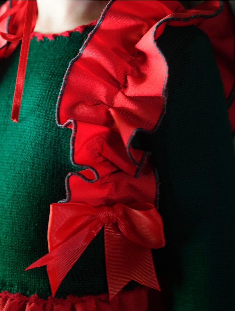 Ela Confeccion AW25 Spanish Girls Red & Green Knitted Dropwaist Dress 2,5y - IN STOCK NOW