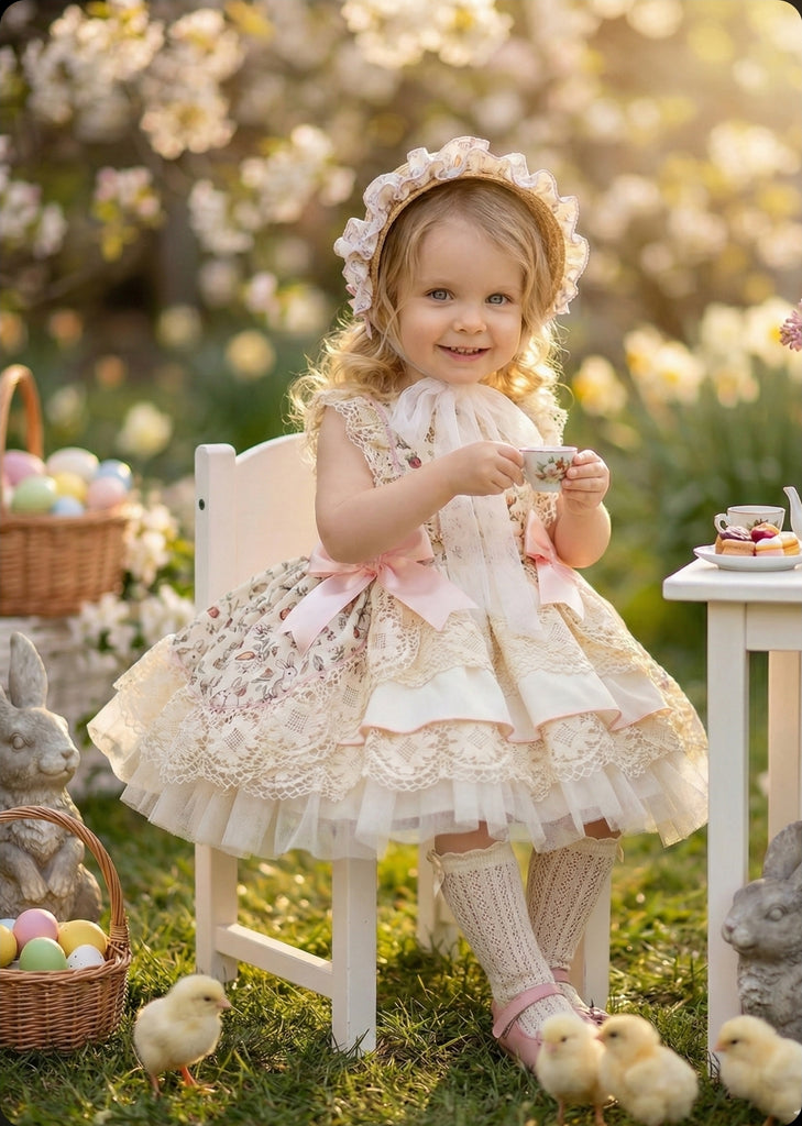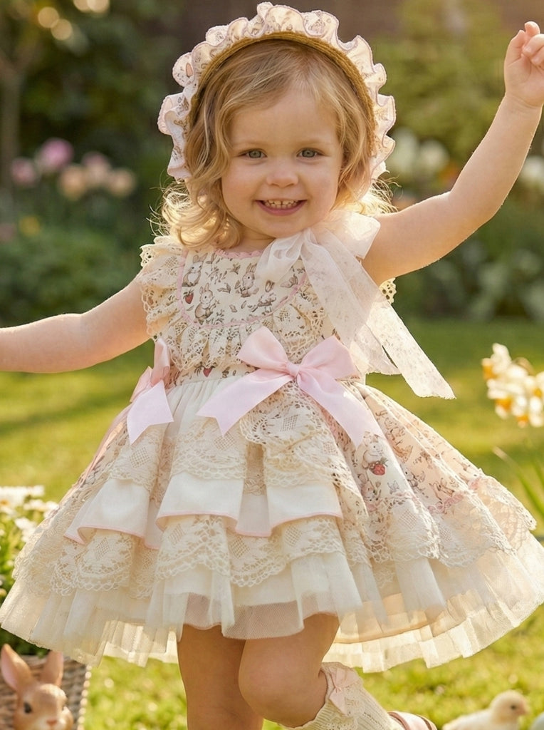 Sonata Infantil SS26 Girls Lace Bunny Puffball Dress VE2612 ~ MADE TO ORDER