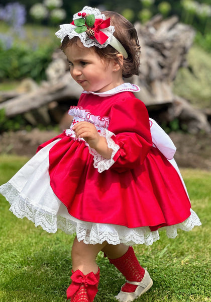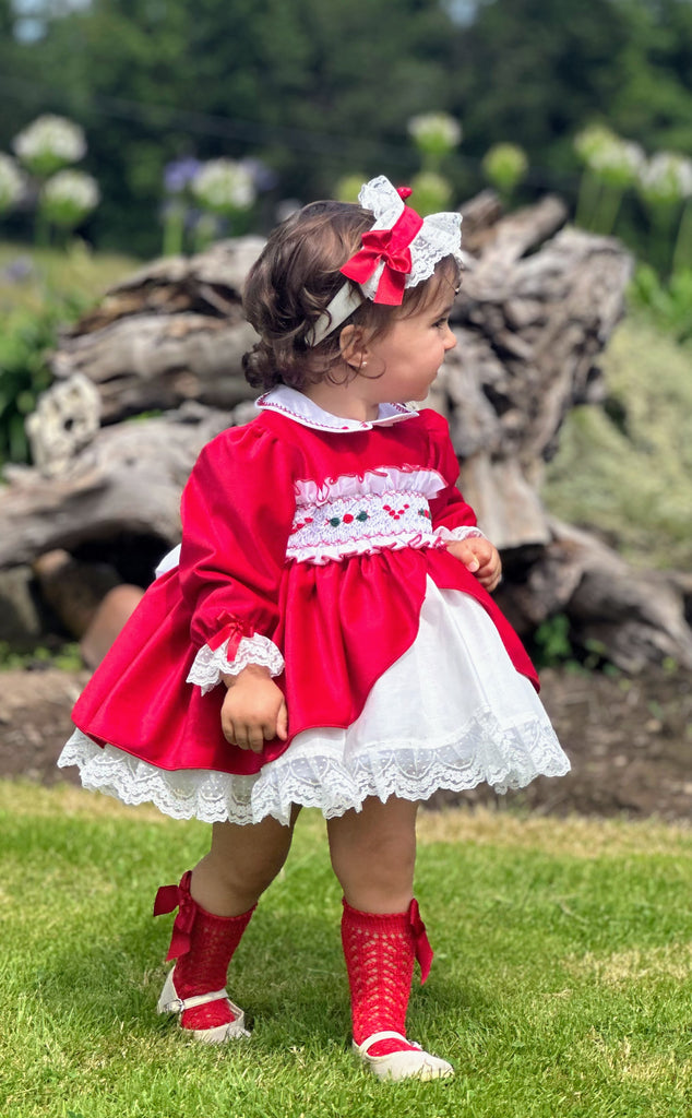Sonata infantil AW24 Spanish Girls Red Smocked Puffball Dress IN2437 - MADE TO ORDER