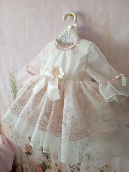 Sonata Infantil Spanish Girls Pink Lace Gardenia Puffball Dress IN1 - MADE TO ORDER