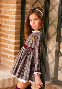 Spanish Girls Grey & Red Tartan Dress - 5y