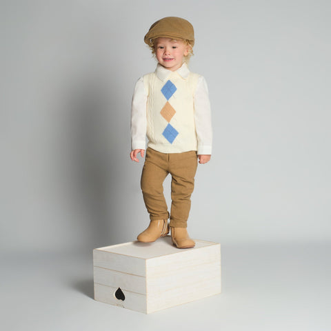 Beau Kid Traditional Boys Navy & Camel Tank Top 4pc Set 2802b