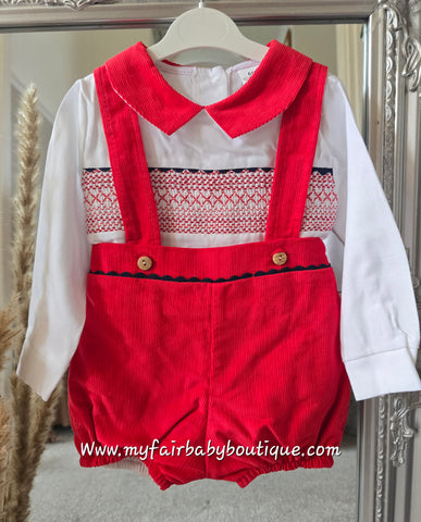 Spanish Baby Boys Red Smocked Christmas Tartan Dungaree Set R004 ~ 3-36m