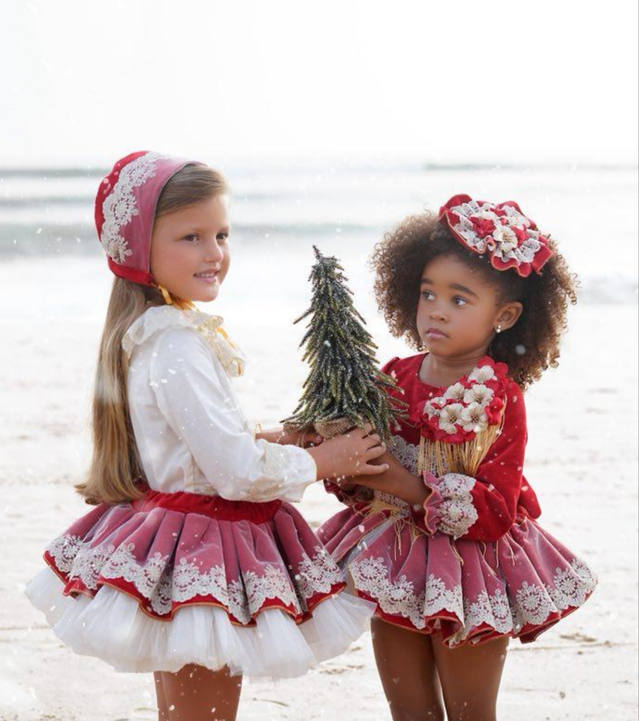 Ela Confeccion AW25 Spanish Girls Red & Cream Lace Skirt & Blouse Set - 5,6,8y ~ IN STOCK NOW