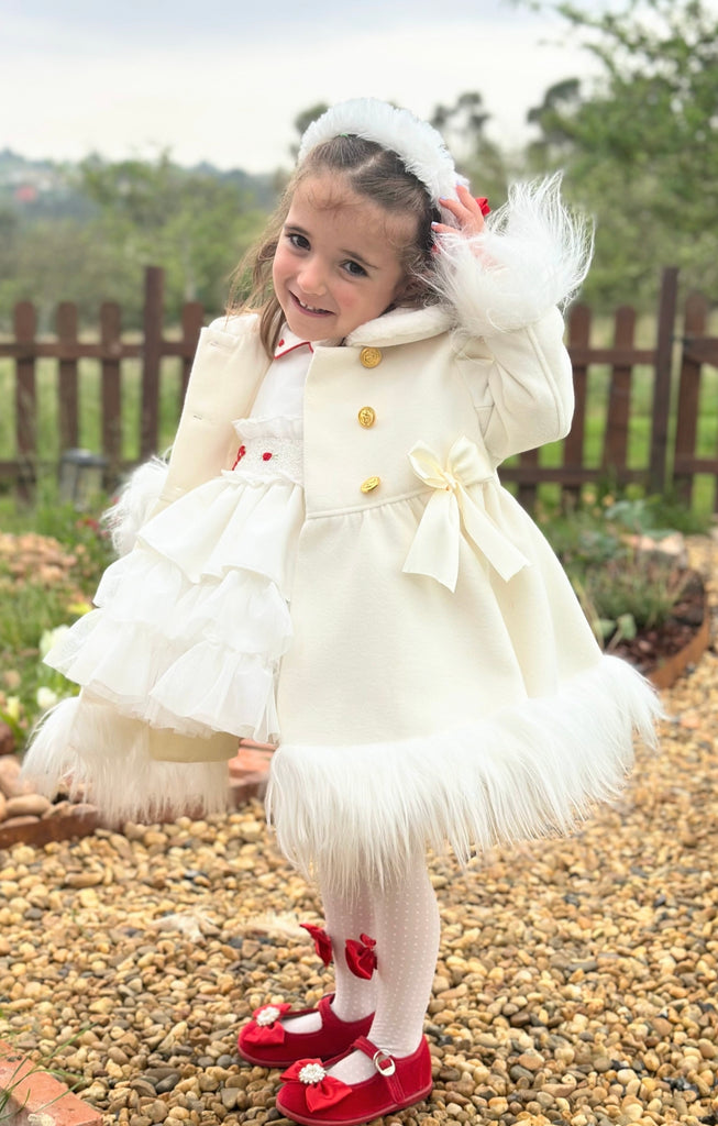 Sonata Infantil AW25 Spanish Girls Cream Winter Fur Trimmed Coat IN2509 - MADE TO ORDER