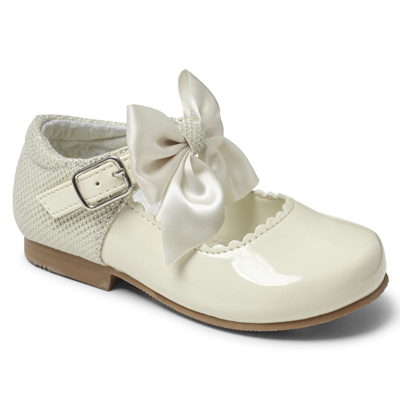 Sevva Girls Cream Patent Mary Jane Bow Shoes - Kristy ~ UK 4,10,11