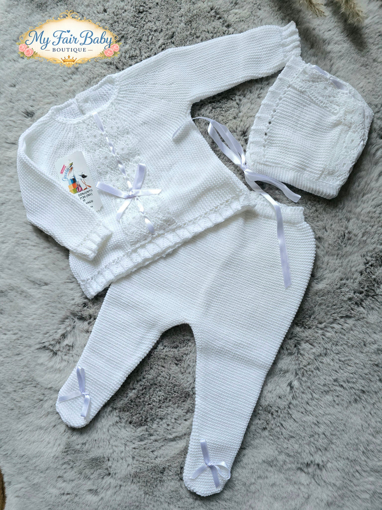 Spanish Creaciones Gavidia Unisex Baby White Knitted 3pc Lace Set 2124