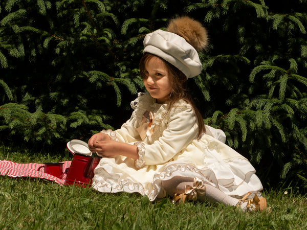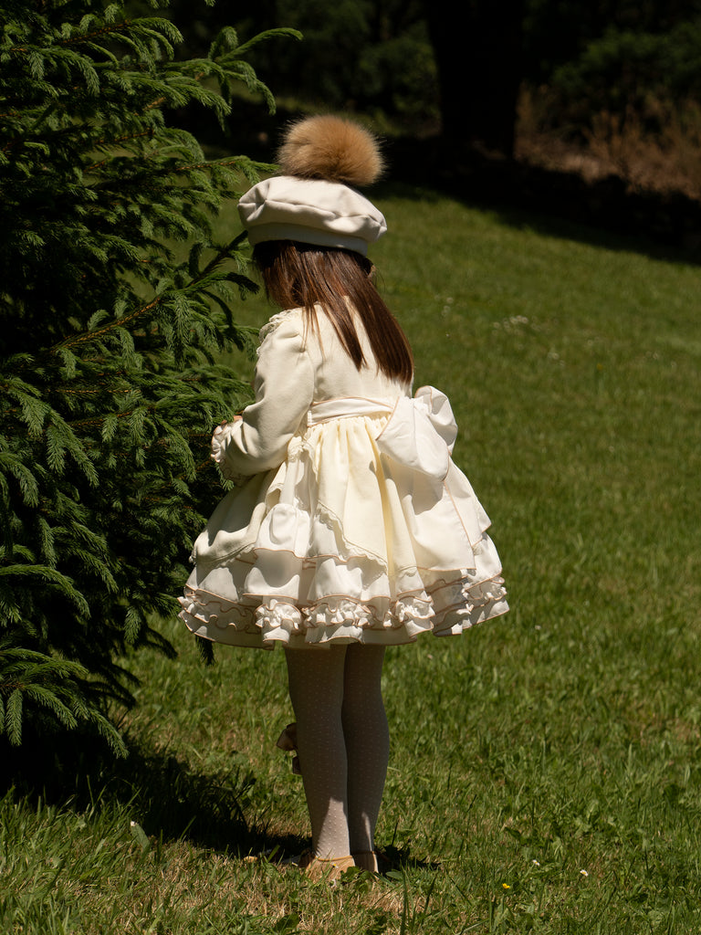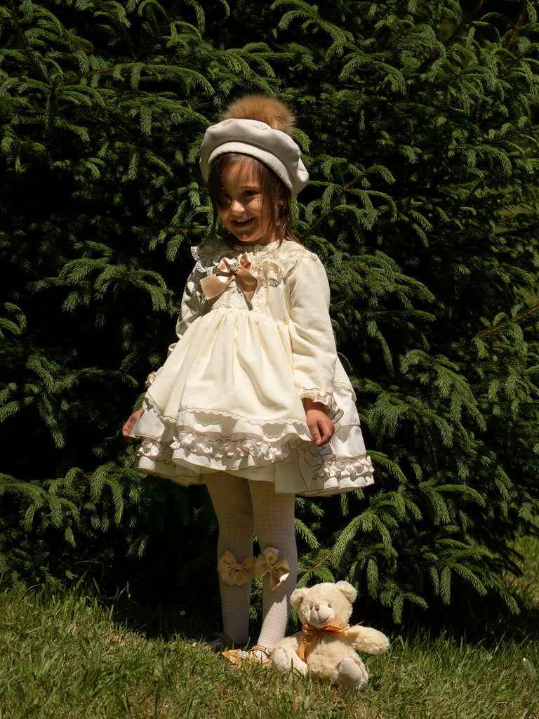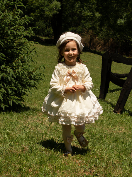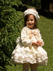 Sonata Infantil Spanish Girls Cream Velvet Puffball Dress IN2225 - MADE TO ORDER