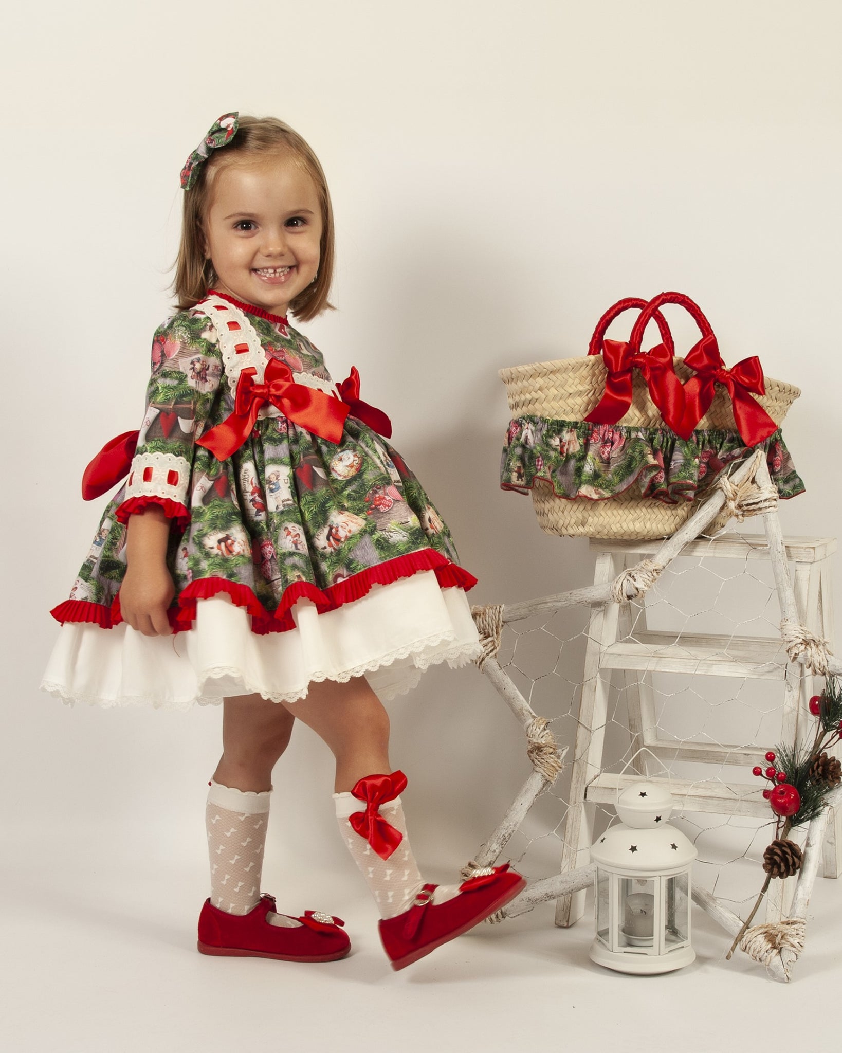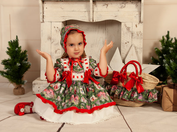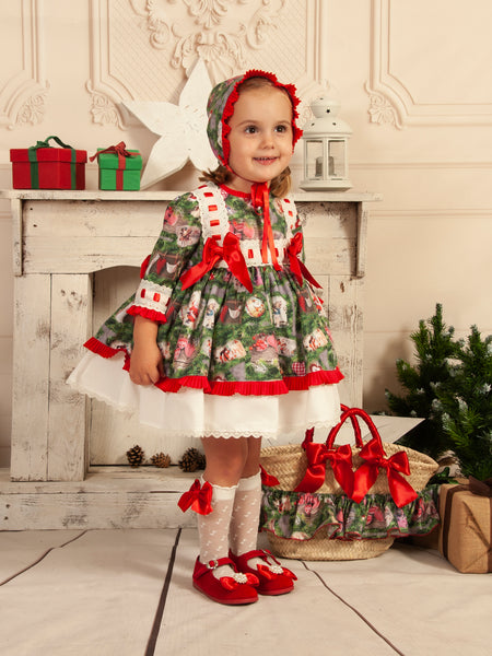 Sonata Infantil Spanish Girls Green Feliz Navidad Puffball Dress IN2238 - MADE TO ORDER