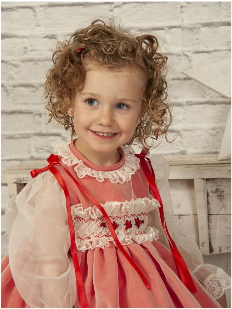 Sonata Infantil Spanish Girls Red Organza Smocked Puffball Dress IN2232 - MADE TO ORDER
