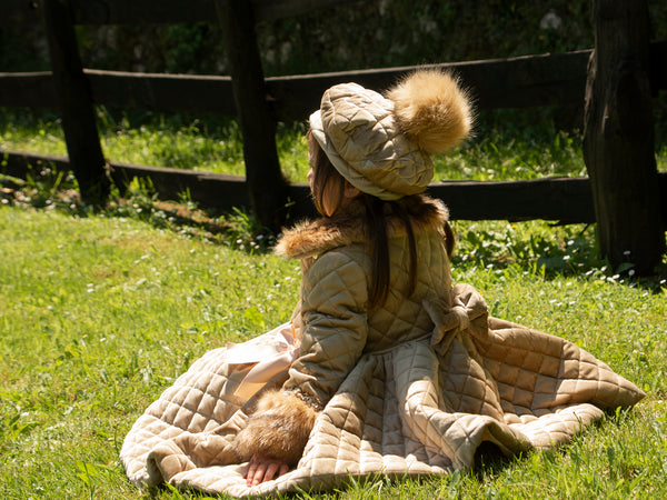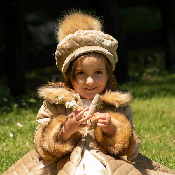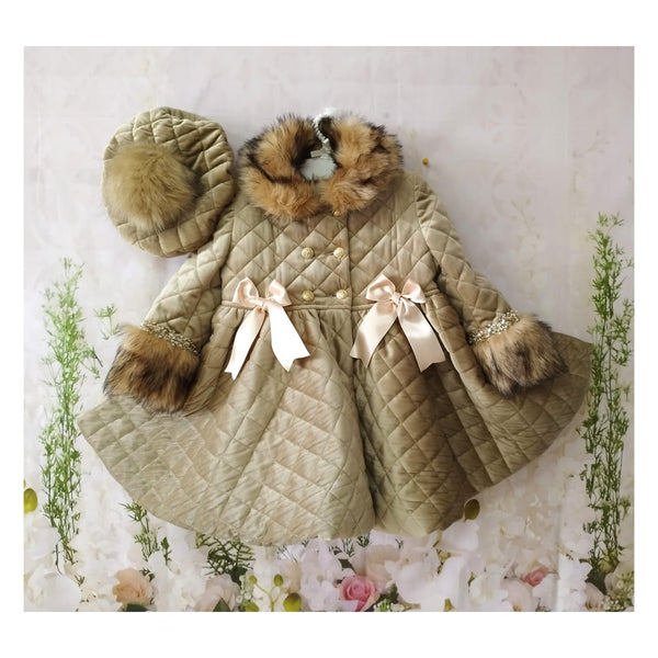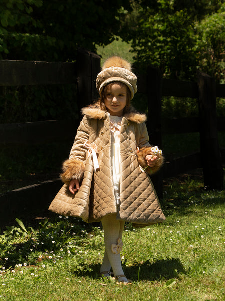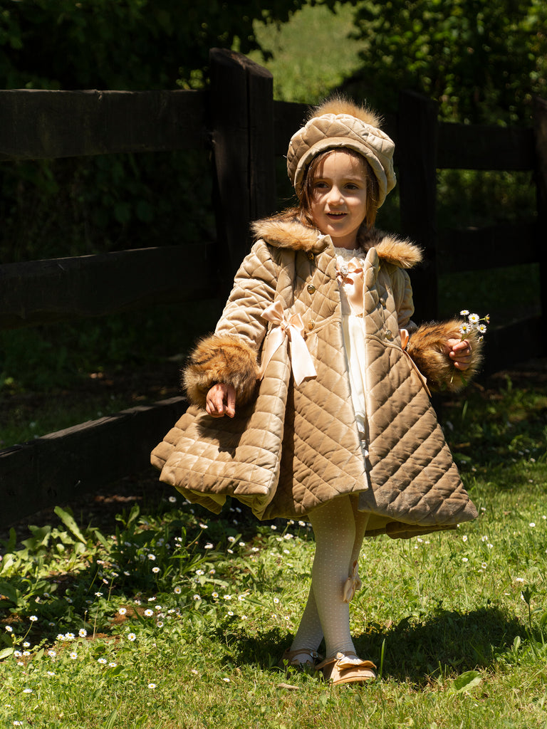 Sonata Infantil Spanish Girls Camel Velvet & Fur Winter Coat IN2226 - MADE TO ORDER