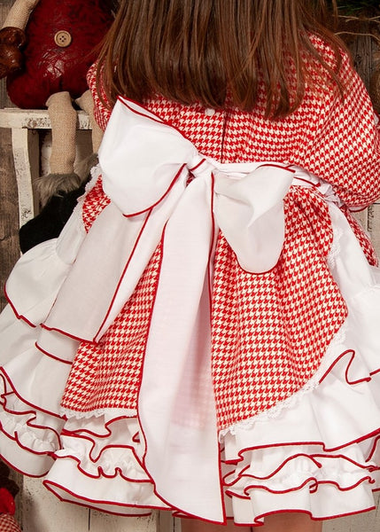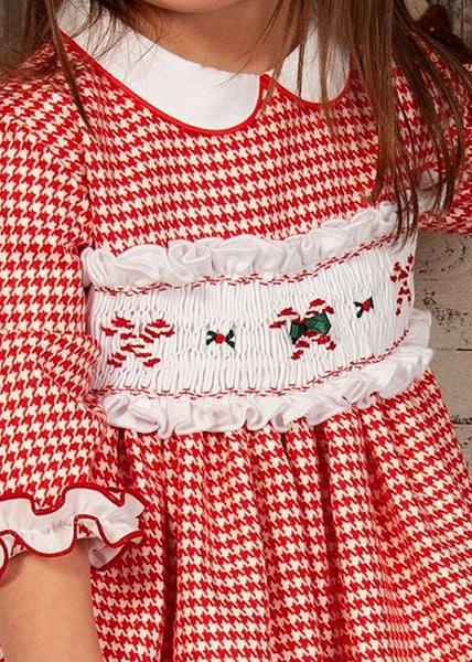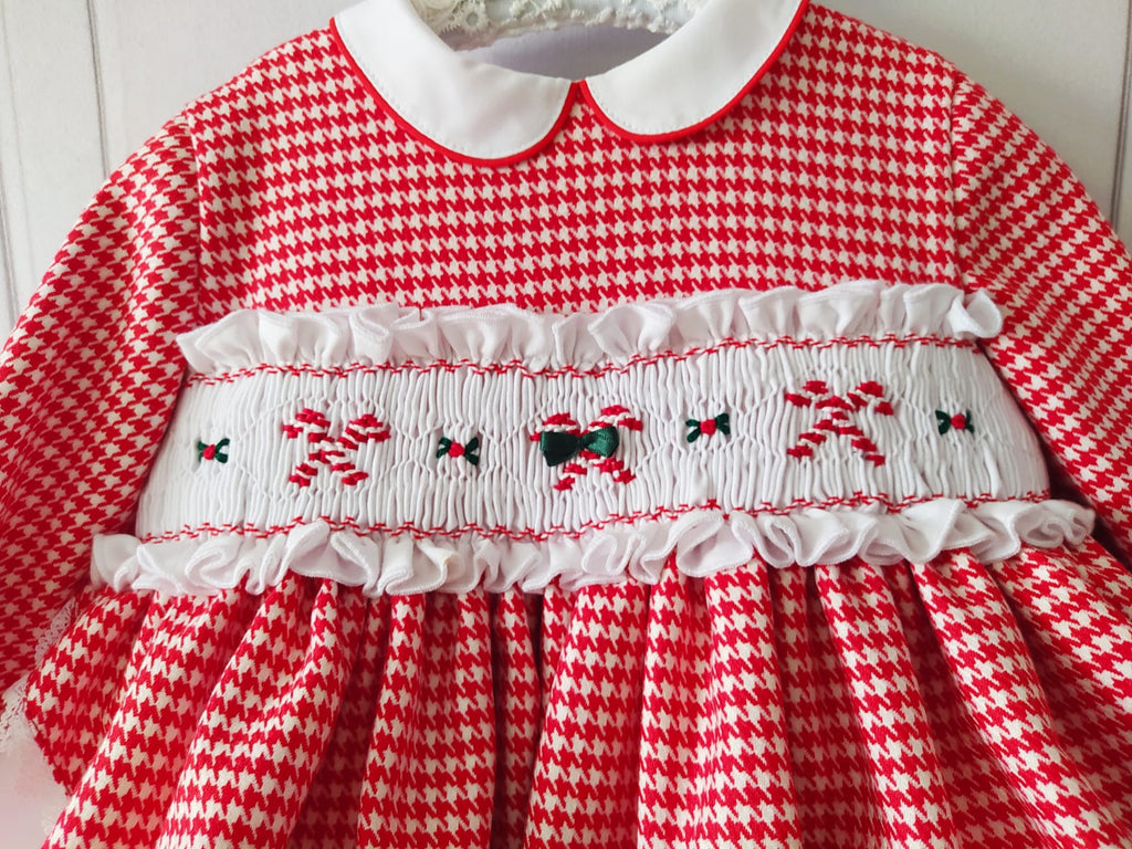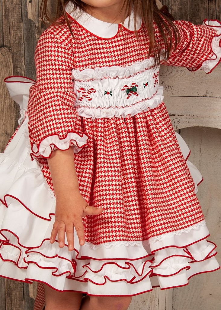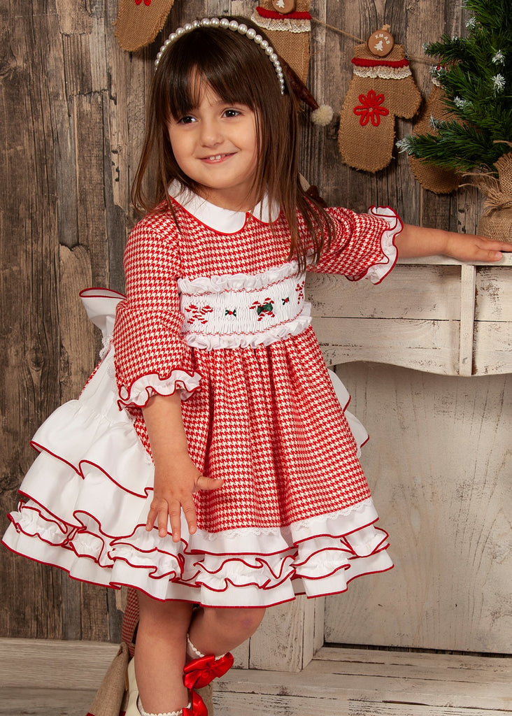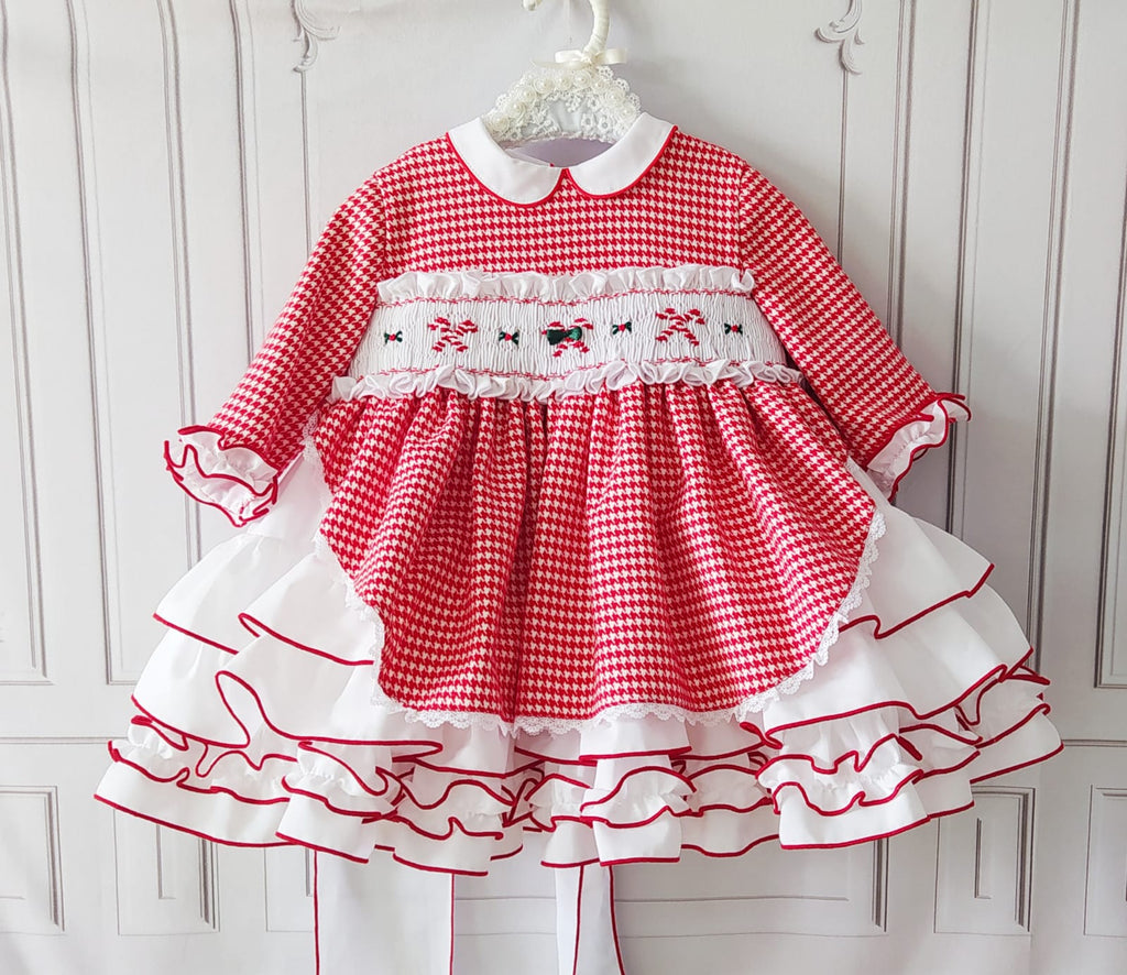 Sonata Infantil Spanish Girls Candy Cane Red Smocked Christmas Puffball Dress IN2131 - MADE TO ORDER