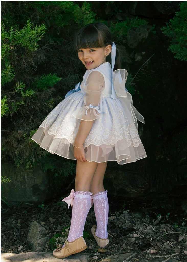 Sonata Infantil Spanish Girls Cream Gardenia Lace Puffball Dress IN2 - MADE TO ORDER