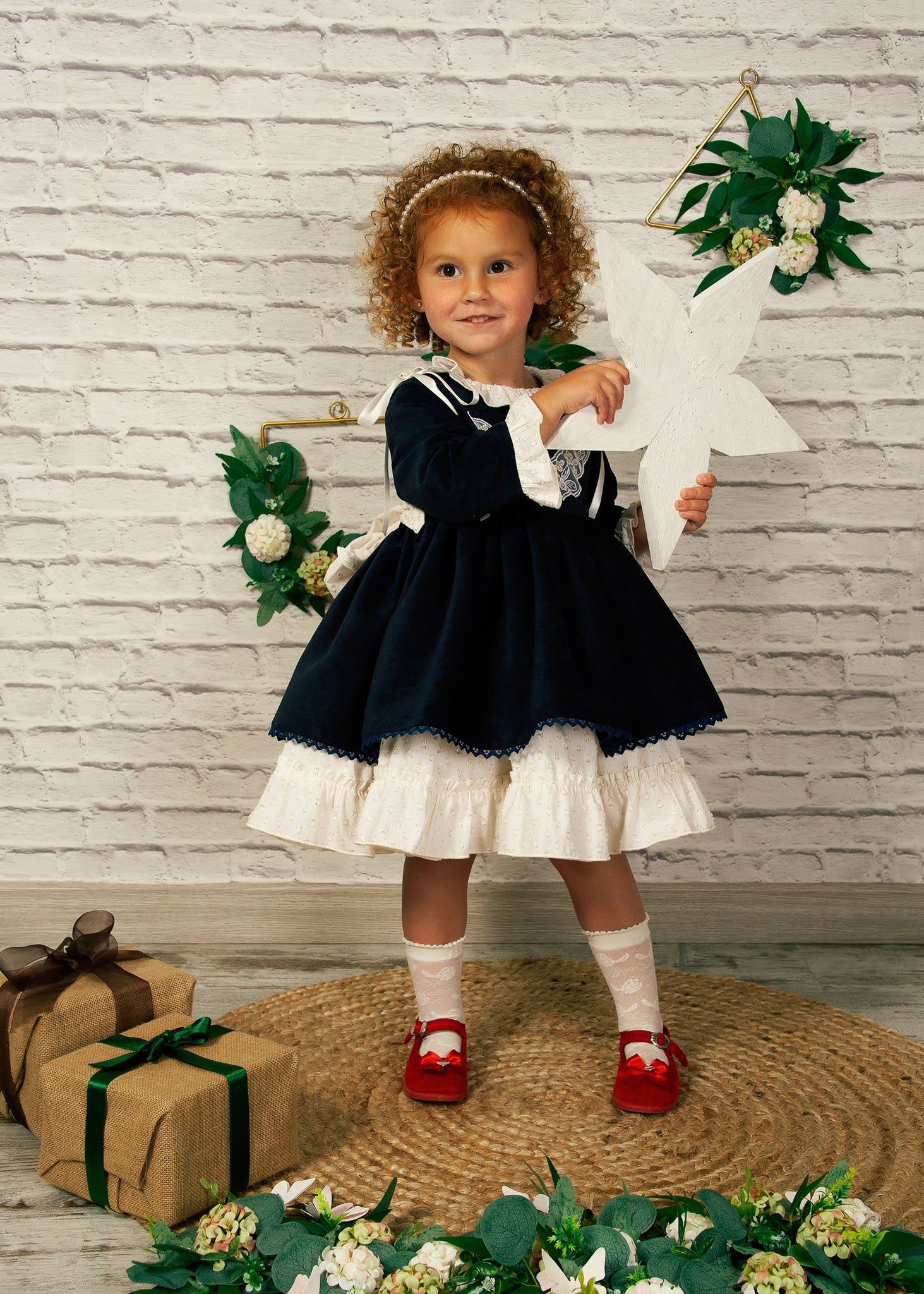 Sonata Infantil Spanish girls navy winter dress with chest embroidery. True to size fitting. the matching hat is available to order separately. This item is made to order and takes approximately 8 weeks to arrive from the order date (if you need the item sooner please message us to discuss this)
