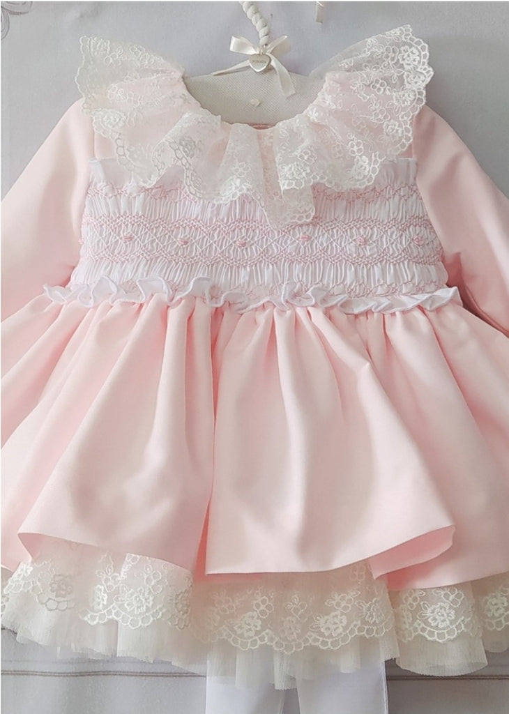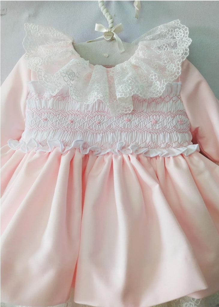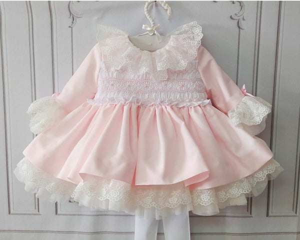 Sonata Infantil Spanish Girls Pink Smocked Pierre De Ronsard Dress MOD116 - MADE TO ORDER