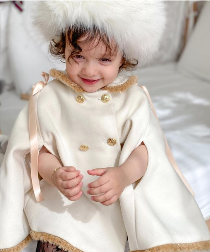 This item is made to order and takes approximately 8 weeks to arrive from the order date. Beautiful Spanish luxury girls cape with fur trim by Sonata infantil.