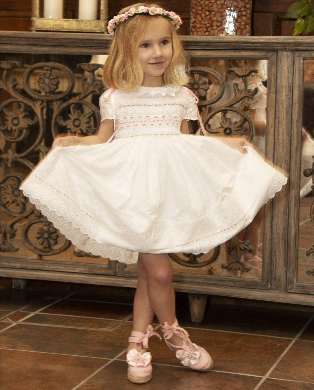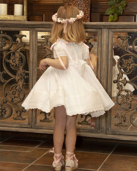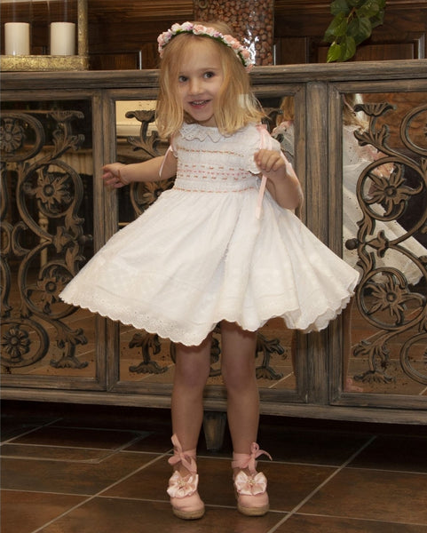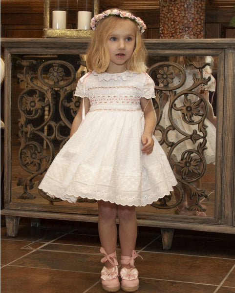 Sonata SS23 Spanish Girls White & Pink Double Smock Dress PC2330 - MADE TO ORDER