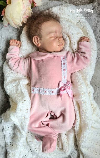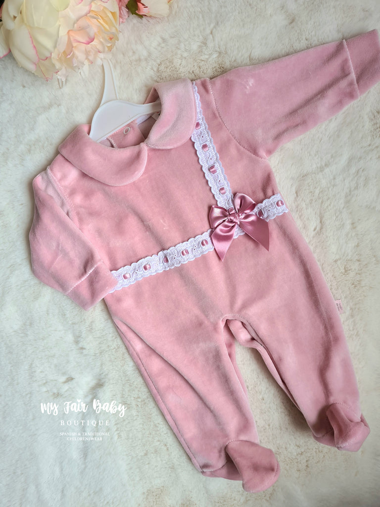 Spanish Girls Dusky Pink Ribbon Slot Velour Sleepsuit/Babygrow ~ 12m
