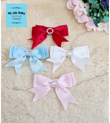 Girls diamantè hair bows. Each pack contains two bows of the same colour.