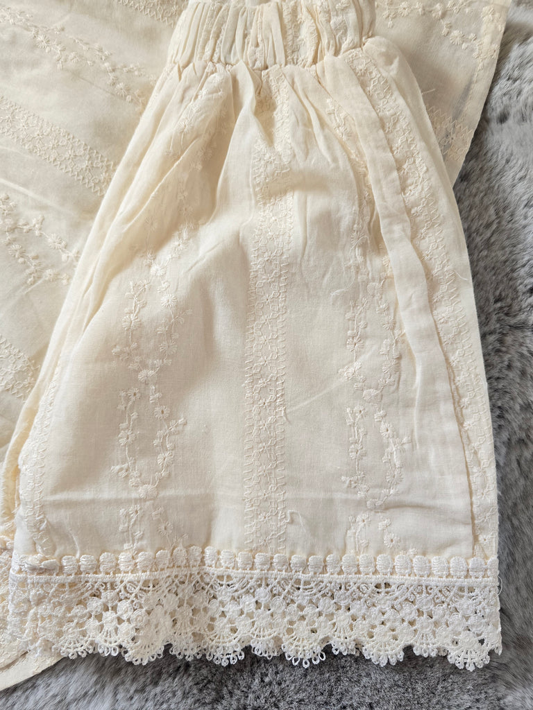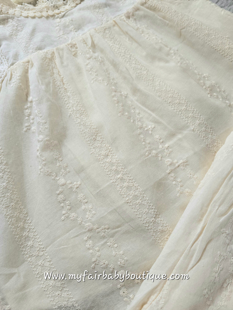 Older Girls cream lacey cotton top & shorts with embroidery design. True to size fitting.