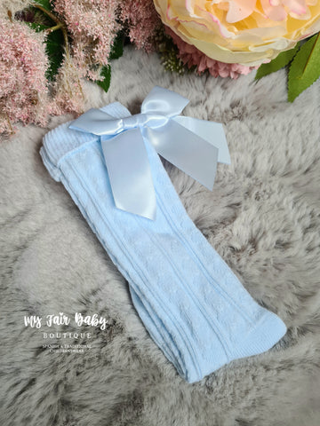 Spanish Style Baby Girls Grey Knee High Bow Socks